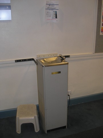 Not all Beaver water fountains are created equal. In fact, they used to be downright erratic. Many of you must remember that before this year, the water fountain in the library was incredibly overpowered and super-sensitive. The fountain by the preschool used to be dismal. Ah, but remember the old one by Sawtell Gym? (I reckon very few of you do.) I was always a fan of that one, although I seem to remember a bit of controversy about that.